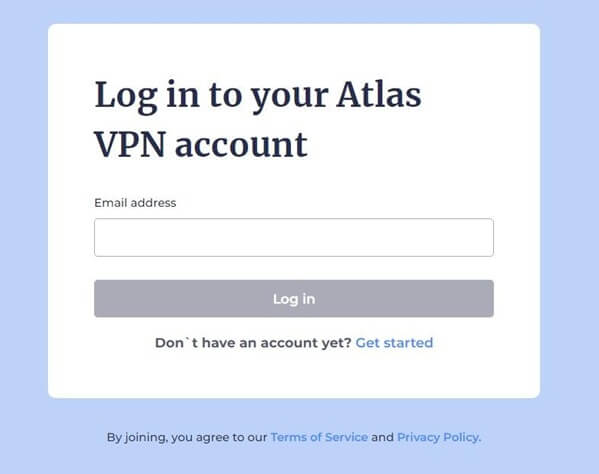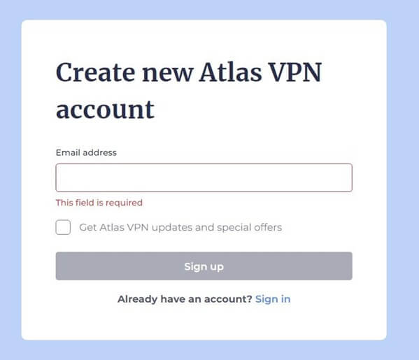 Регистрация в Atlas VPN